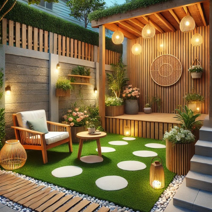 - Add a water feature like a small pond or fountain to create a tranquil ambiance.
