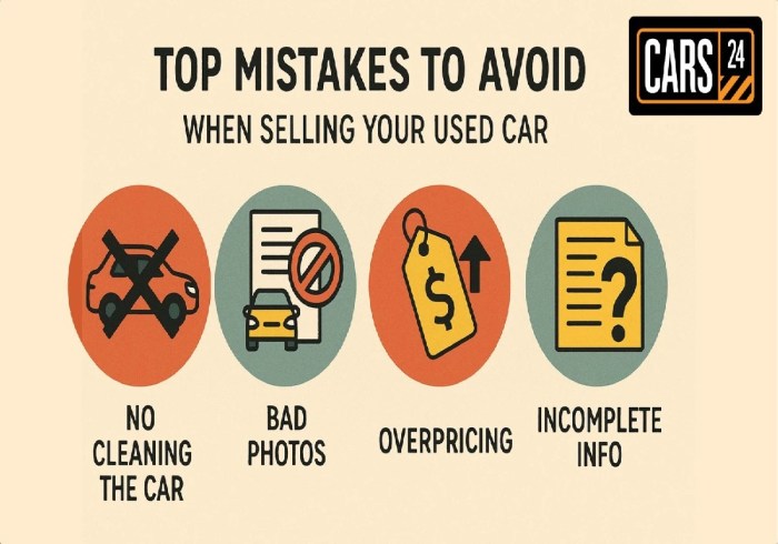 What are the most common mistakes to avoid when selling a used car?